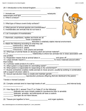 The Animal Kingdom Worksheet is a great way to help students gain a better understanding of the Animal Kingdom. The worksheet consists of a series of questions and answers related to the Animal Kingdom and its characteristics. The worksheet can be used to help students learn about the different types of animals, as well as the characteristics that make them unique. The worksheet can also provide students with an introduction to the Animal Kingdom, which will help them better understand the different phyla and organisms that make up the Animal Kingdom.